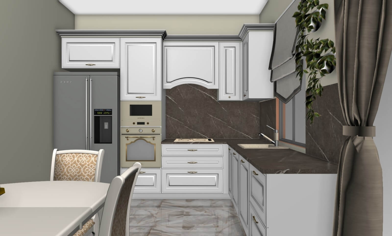Заказ проекта у дизайнеров VERNO – это гарантия оптимального использования площади кухни с учетом ее особенностей и пожеланий заказчика. В процессе разработки Вы сможете сотрудничать со специалистом, вносить корректировки, с вами будут согласованы все детали – от комплектации гарнитура до формы мебельных ручек. Для вашего удобства дизайнерские решения будут визуализированы – 3D-проект позволит вам наглядно увидеть и оценить будущую кухню.